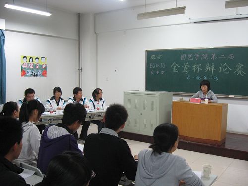 “金鶯杯”辯論賽由園藝學(xué)院大一學(xué)生參加,共有近20場(chǎng)比賽,是園藝學(xué)院為積極準(zhǔn)備“新生杯”辯論賽進(jìn)行的系統(tǒng)的訓(xùn)練賽。隨著此場(chǎng)辯論賽的圓滿進(jìn)行,園藝學(xué)院第二屆“金鶯杯”辯論賽正式拉開了序幕。