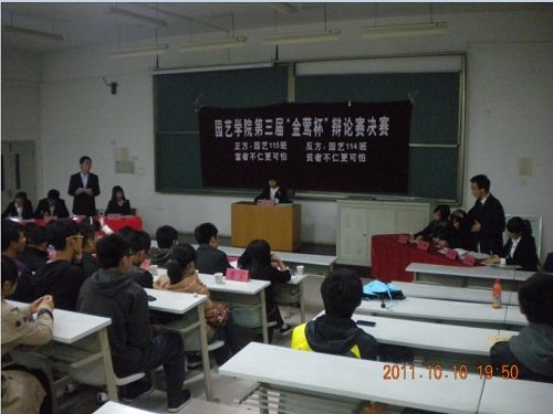 辯論雙方分別為:來自園藝115班的正方和來自園藝114班的反方,他們就“富者不仁更可怕還是貧者不仁更可怕”展開了激烈的辯論。最后園藝115班以出色的辯才贏得了勝利,正方二辯榮獲最佳辯手。