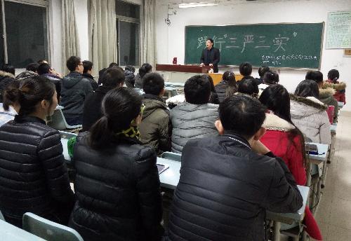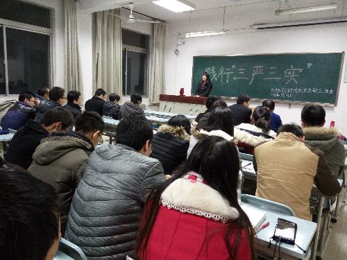 會上,李建明教授帶領(lǐng)大家學(xué)習(xí)了“三嚴(yán)三實”的主要內(nèi)容;與會人員圍繞主題自由發(fā)言。未魏同學(xué)針對自己科研上的不足做了深刻反省并提出了進一步改進的措施;張鑫同學(xué)結(jié)合自己的實際情況詮釋了與研究生自身息息相關(guān)的三嚴(yán)三實,針對三嚴(yán)提出了良好的心態(tài)、適合自己的規(guī)劃、贍養(yǎng)父母盡孝道的權(quán)利,三實則講到自己即將面臨畢業(yè),不管是工作亦或是做人都要“實”;潘桐華同學(xué)以自身存在的問題提出了我們應(yīng)以周圍的優(yōu)秀研究生為榜樣,時常反省自己,并設(shè)立長短期目標(biāo);陳丹艷和楊建宇新生則指出自己缺乏自主學(xué)習(xí)能力,下學(xué)期應(yīng)多向師兄師姐學(xué)習(xí),嚴(yán)格要求自己,腳踏實地。以楊振超老師為代表的教師黨員表示,要好好學(xué)習(xí)三嚴(yán)三實的重要內(nèi)容,并在實際工作中認(rèn)真踐行。鄒志榮教授針對“三嚴(yán)三實”也發(fā)表了自己的見解,他認(rèn)為“三嚴(yán)”實則做人,“三實”則指做事,并以文藝工作者閆肅老先生為例講述了做人做事,希望大家都可以成為一個對社會有用有貢獻的人。
