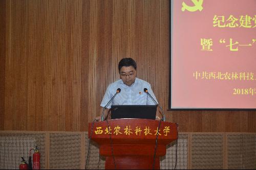 學院黨委書記黃德寶代表學院黨委向新加入黨組織的同志、向受到表彰的先進基層黨組織、優(yōu)秀共產(chǎn)黨員、優(yōu)秀黨務(wù)工作者表示熱烈的祝賀。他簡要回顧了黨的發(fā)展歷史和近年來黨的建設(shè)偉大成就,及合校以來學院的成就,成績突出,振奮人心。同時也指出了工作中的不足以及下一步改進措施,對學院各位黨員提出了殷切期望。并對全體黨員提出了三點希望:一是不忘初心,堅定理想信念,師生黨員要勇于擔當、甘于奉獻,時時刻刻不忘自己的黨員身份,自覺成為社會主義核心價值觀的先行者、實踐者、推動者。二是不斷加強政治理論學習,保持思想上的與時俱進,自覺貫徹執(zhí)行新時代新思想;三是牢記服務(wù)宗旨,發(fā)揮模范帶頭作用,全體師生要牢固樹立“四個意識”,堅定“四個自信”,始終保持共產(chǎn)黨員的先進性,立足崗位,主動迎接挑戰(zhàn),為取得雙一流建設(shè)新成就而繼續(xù)努力奮斗。