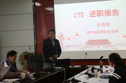 茶葉創(chuàng)新團隊黨支部書記余有本進行匯報
