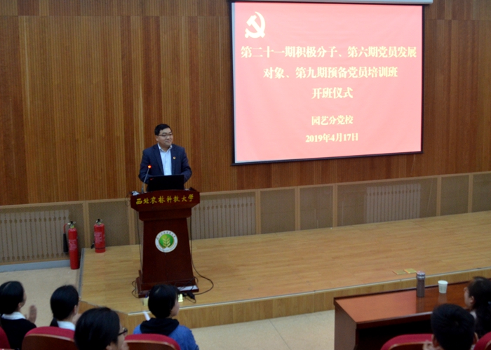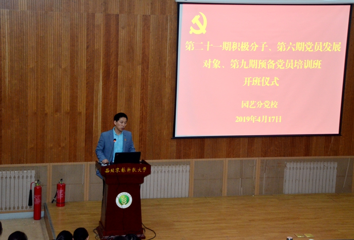 為進一步提高預備黨員,發(fā)展對象以及入黨積極分子的思想認識、政治覺悟、黨性修養(yǎng),確保黨員發(fā)展質(zhì)量,園藝學院分黨校于4月17日晚在學院階梯教室舉行了第二十一期積極分子、第六期黨員發(fā)展對象、第九期預備黨員培訓班開班儀式并進行了第一次線下教學。學院黨委書記黃德寶、馬克思主義學院丁艷紅老師及培訓班全體學員參加了此次開班儀式,會議由黨委副書記唐海波主持。