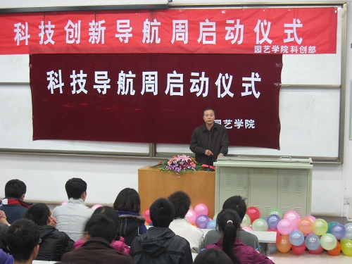 為了讓2010級學(xué)生對科技創(chuàng)新有一個更全面、深刻的了解,加強新同學(xué)對科技創(chuàng)新重要性的認(rèn)識。10月25日晚,園藝學(xué)院特色活動“科技導(dǎo)航周”活動的啟動儀式在北校區(qū)8T02教室拉開帷幕。園藝學(xué)院副院長王西平、黨委副書記李京春、團工委書記高杰及全院2010級新生參加了本次活動。