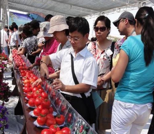 論壇期間,在陜西省高陵縣藥惠現(xiàn)代農(nóng)業(yè)示范園舉辦了規(guī)模宏大的番茄品種觀摩會(huì),考察20個(gè)單位提供的86個(gè)展示品種。中國園藝學(xué)會(huì)番茄分會(huì)常務(wù)理事、我校園藝學(xué)院梁燕教授引導(dǎo)與會(huì)代表實(shí)地考察了來自全國各地86個(gè)番茄品種的田間生長情況,現(xiàn)場品評了這些品種的果實(shí)性狀、商品性狀以及口感風(fēng)味。