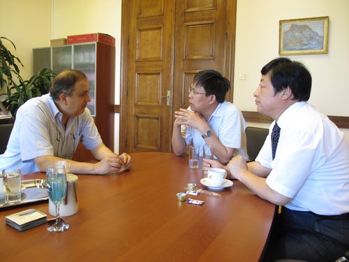 我校代表同雅典農(nóng)業(yè)大學(xué)副校長Paplomatas先生在校長辦公室會談